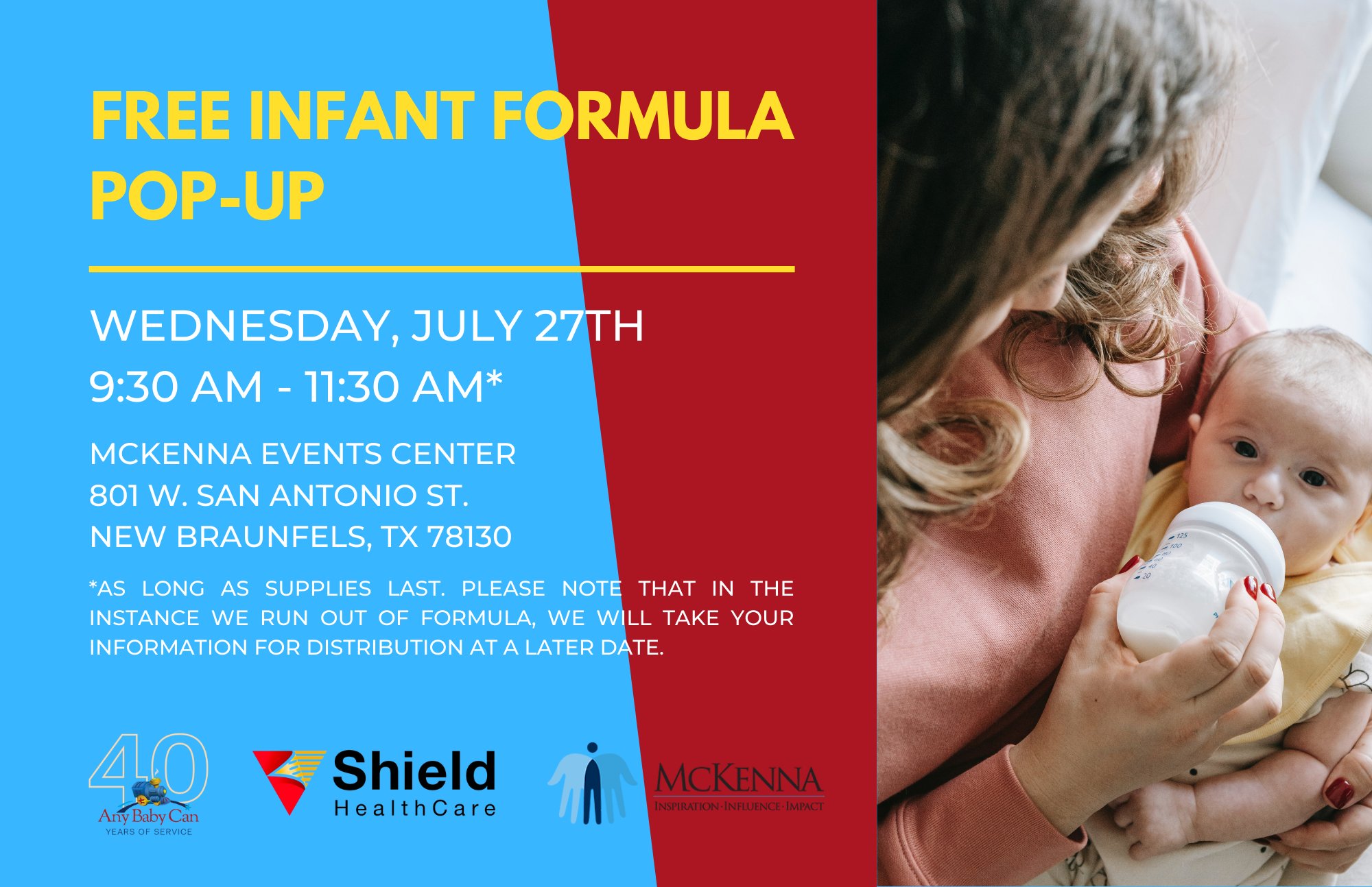Any Baby Can Sa On Twitter New Braunfels Care Givers Come Pop By Our Free Formula Pop Up We Ll Be At The Mckenna Events Center From 9 30 11 30 Today Anybabycansa Freeinfantformula Https T Co Sh00bfvqay